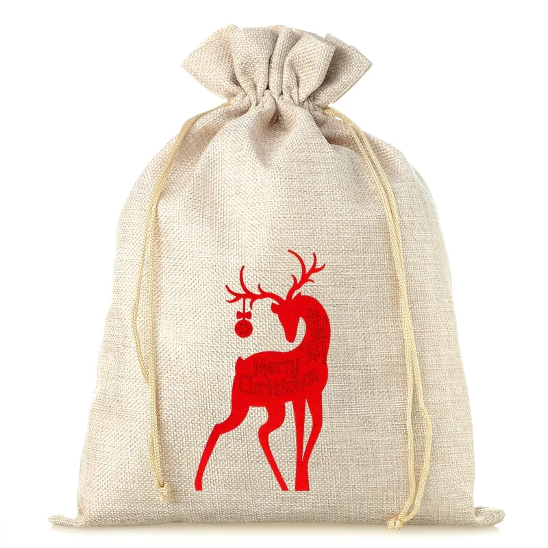 1 szt. Worek jutowy 26 x 35 cm - Boże Narodzenie - Jeleń