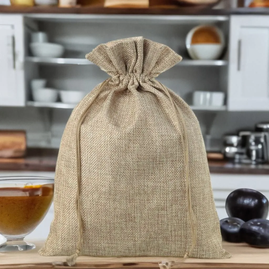 Niewielkie, bardzo uniwersalne worki z eleganckiej juty koloru naturalnego, w rozmiarze 50 x 65 cm. Prezentowany pakiet składa się z 1 sztuki, dzięki czemu jednorazowy zakup może wystarczyć na dłuższy czas.