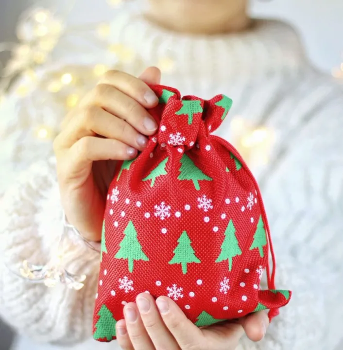 1 szt. Worek jutowy z nadrukiem 30 x 40 cm - czerwony / choinka
