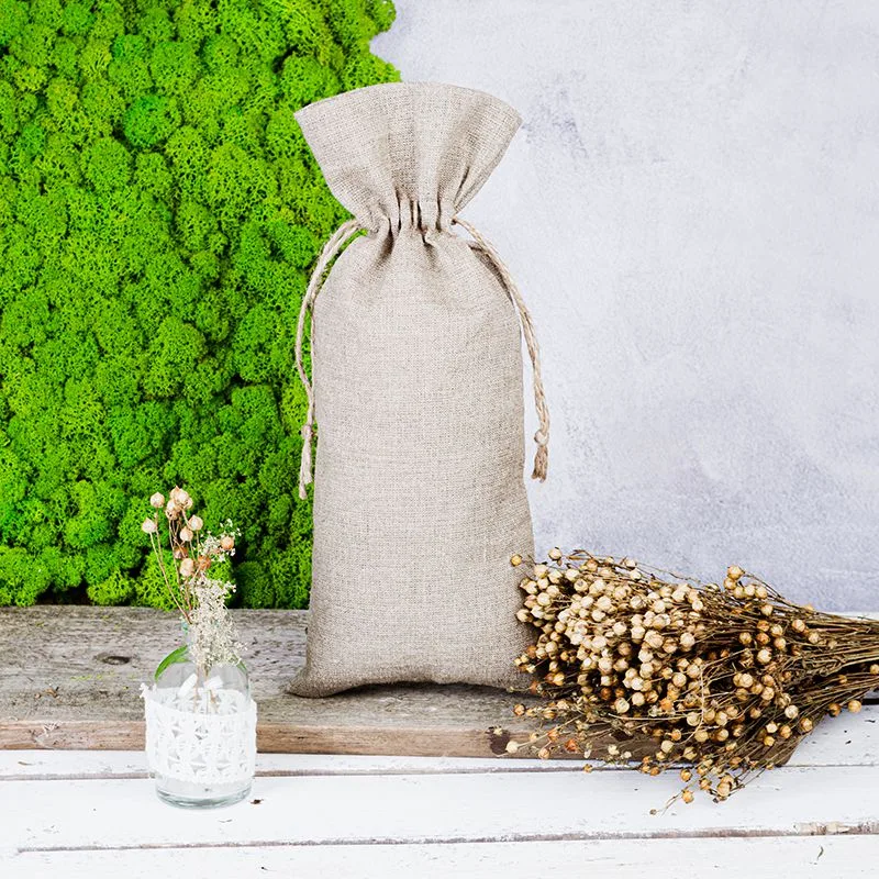 Tu zamówisz lniany woreczek na butelkę lub inne podłużne przedmioty. Ten wielorazowy eko woreczek ze 100% lnu w kolorze naturalnym to doskonały wybór! Oferowana w tym miejscu materiałowa torebka ze sznurkiem w ściągaczu ma wymiary 16 x 37 cm. Produkt pakowany jest pojedynczo.