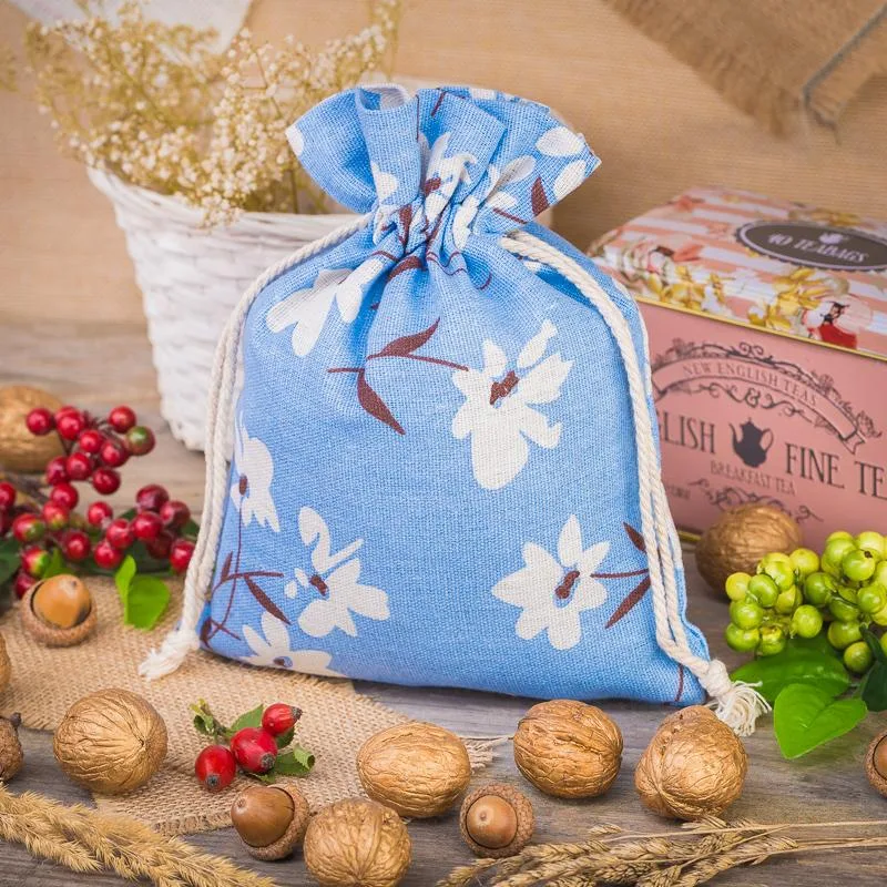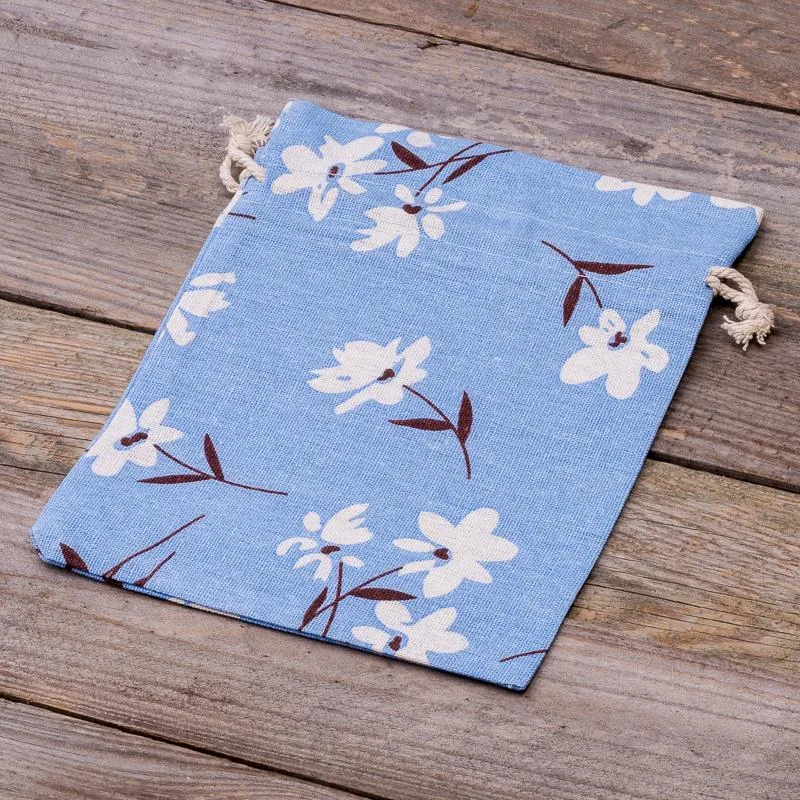 1 szt. Woreczek à la lniany z nadrukiem 18 x 24 cm - niebieskie kwiaty