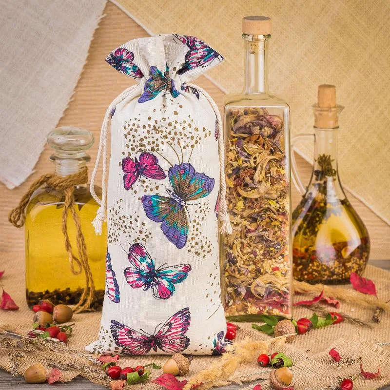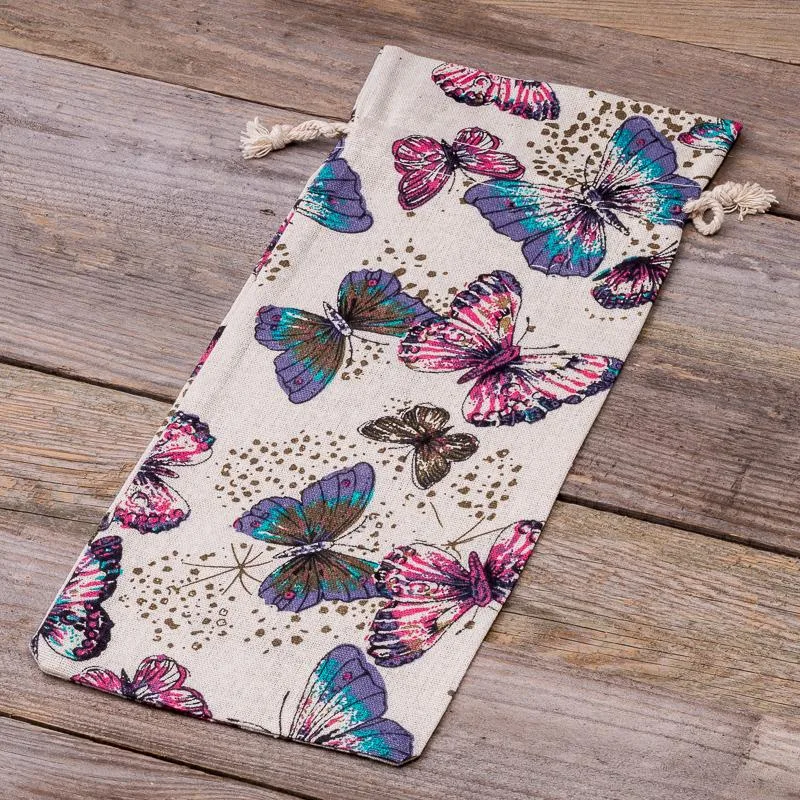 1 szt. Woreczek à la lniany z nadrukiem 16 x 37 cm - naturalne / motyl