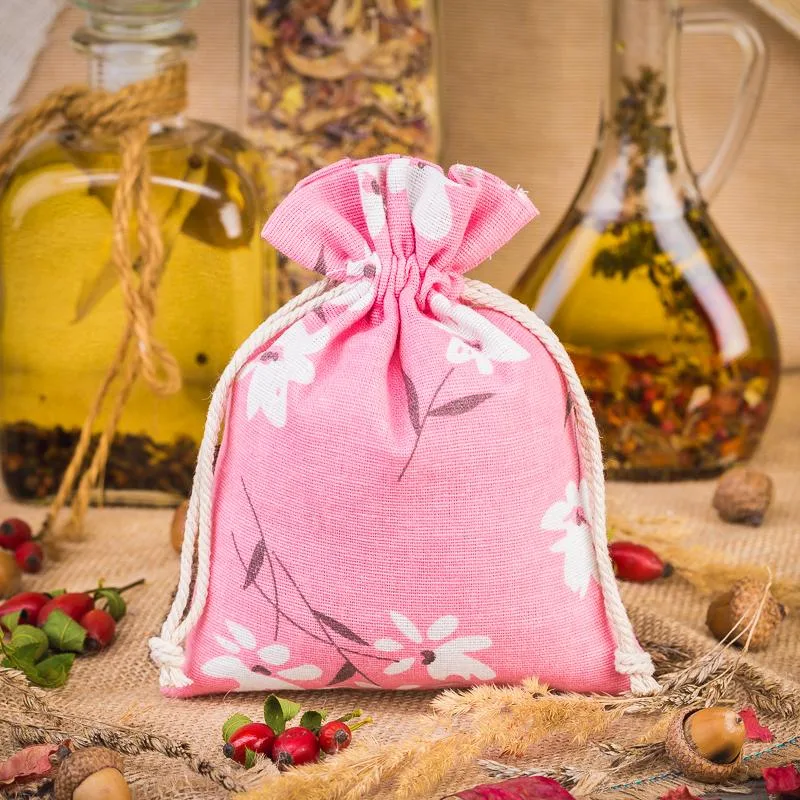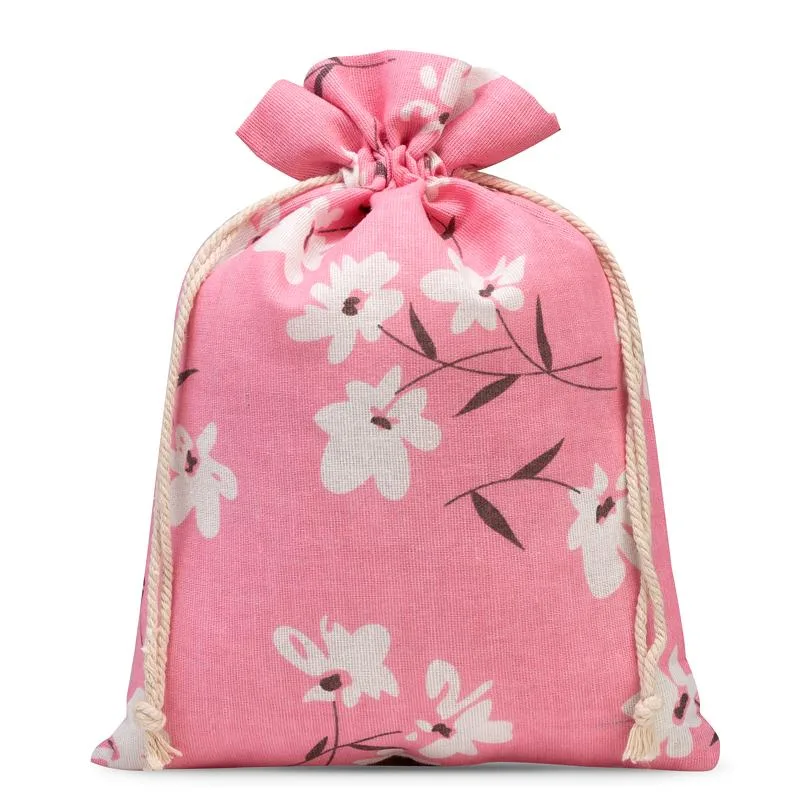 1 szt. Worek à la lniany z nadrukiem 22 x 30 cm - różowe kwiaty