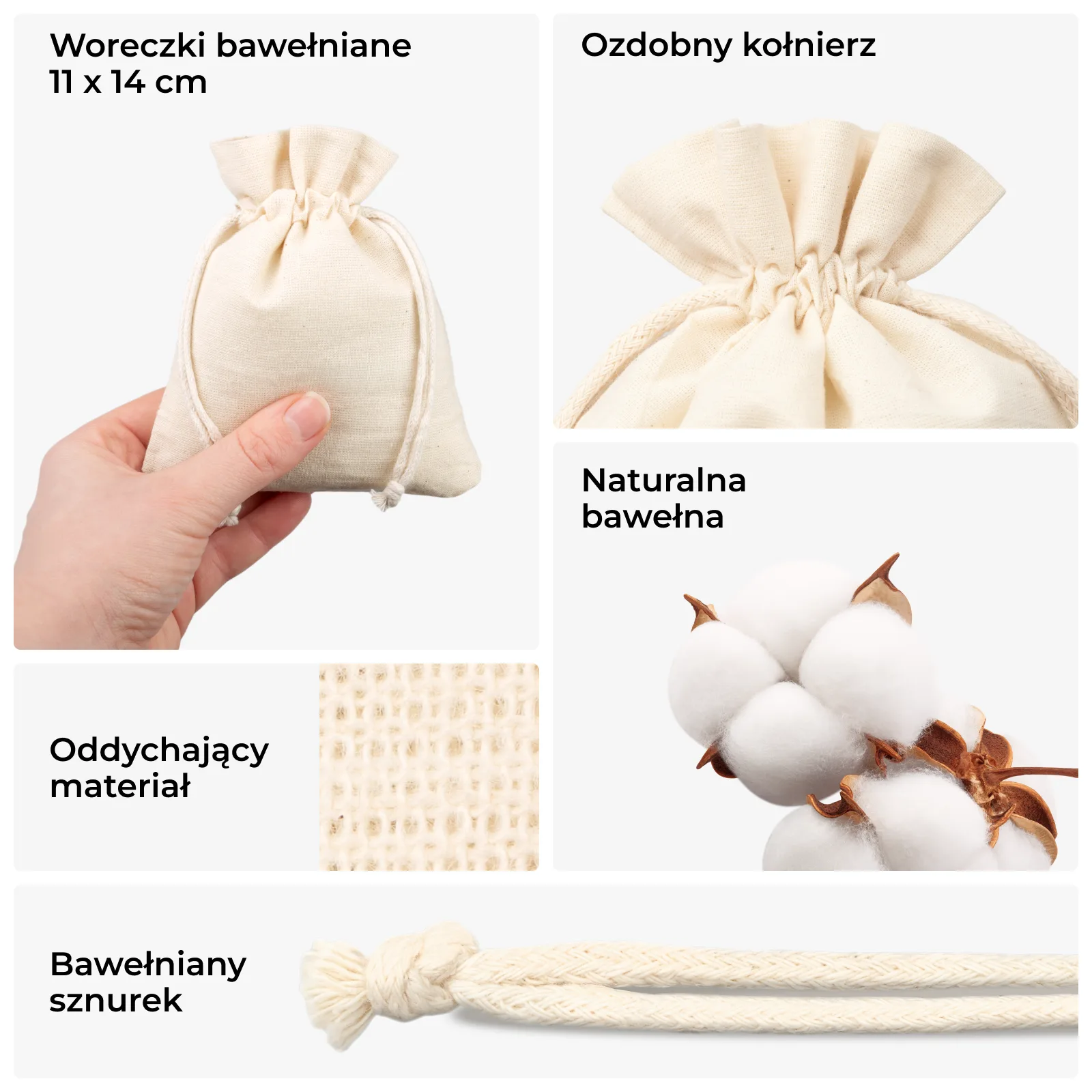 10 szt. Woreczki bawełniane 11 x 14 cm - naturalne
