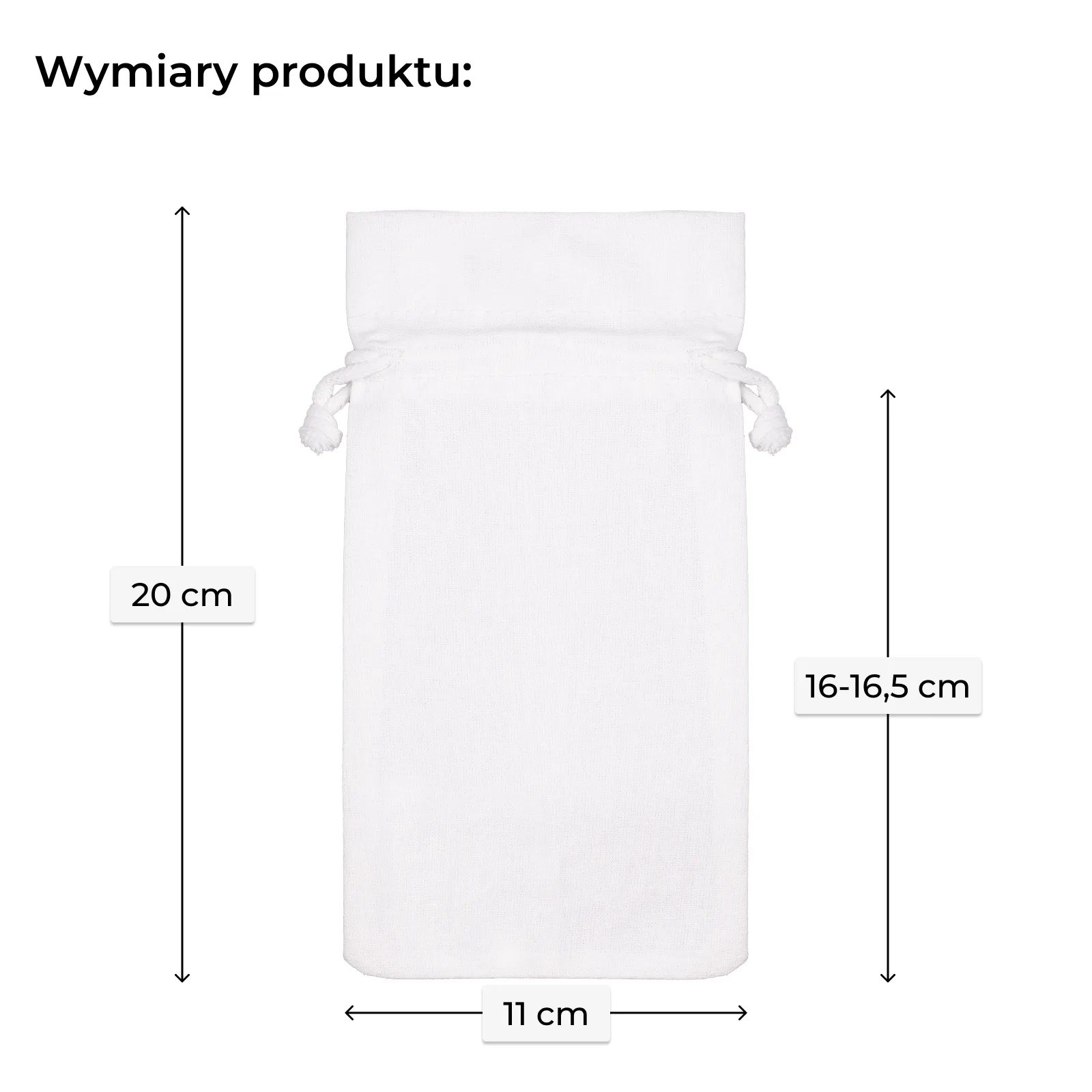 Niewielkie, ale o uniwersalnym zastosowaniu woreczki z eleganckiej bawełny w kolorze białym w rozmiarze 11 x 20 cm. Prezentowany pakiet składa się z 10 sztuk, dzięki czemu jednorazowy zakup praktycznych torebek wystarczy Ci na dłużej.