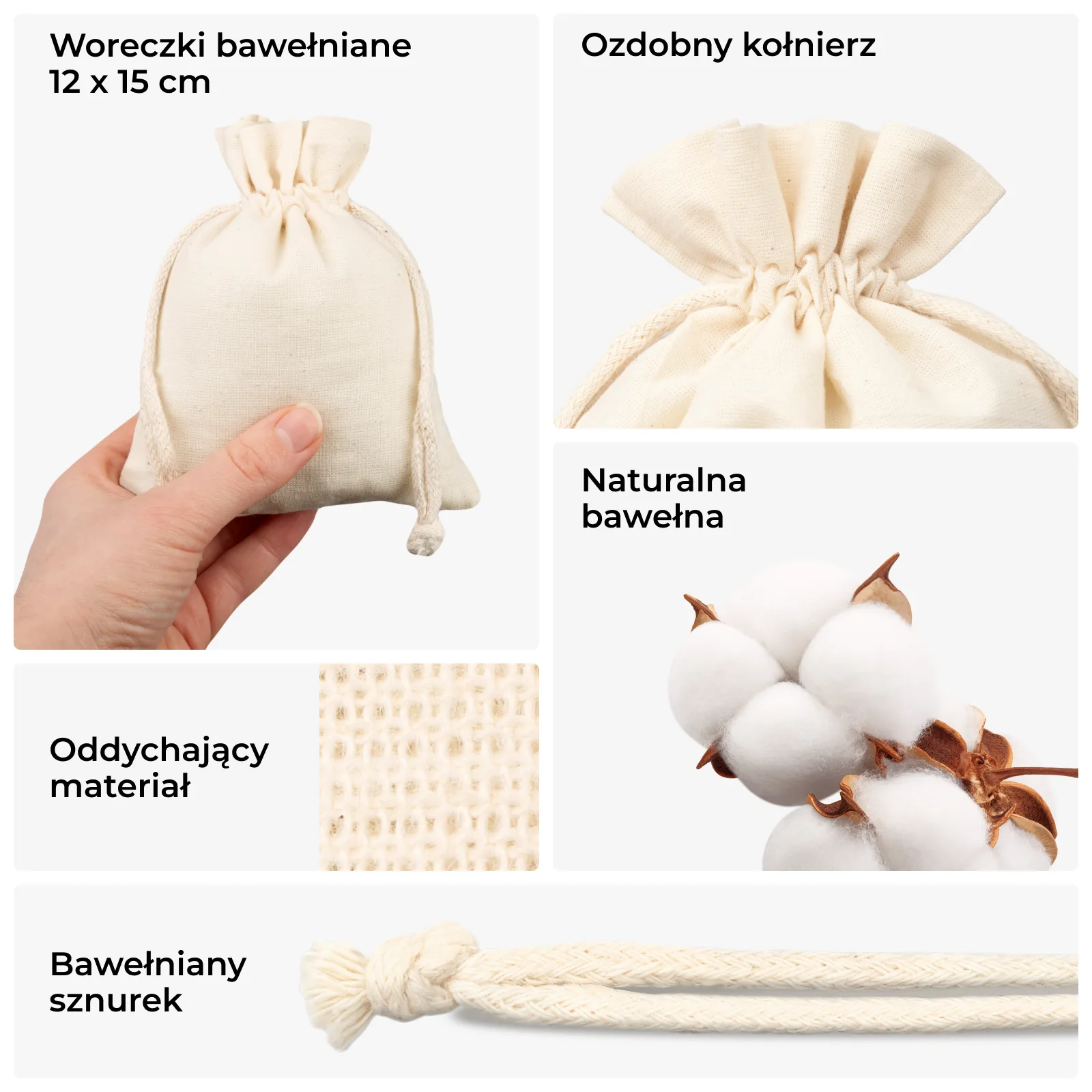 Woreczki bawełniane 12 x 15 cm - ekologiczne opakowanie dla Twoich produktów