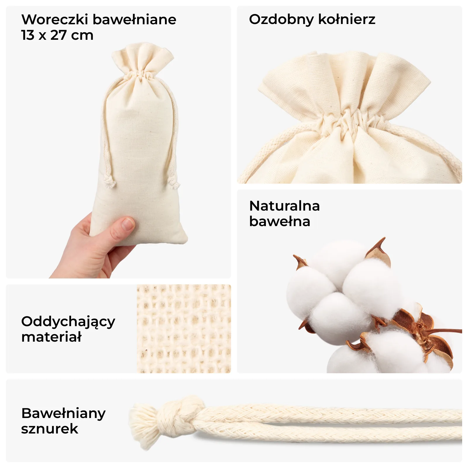 Woreczki bawełniane 13 x 27 cm, 10 szt. - kolor naturalny
