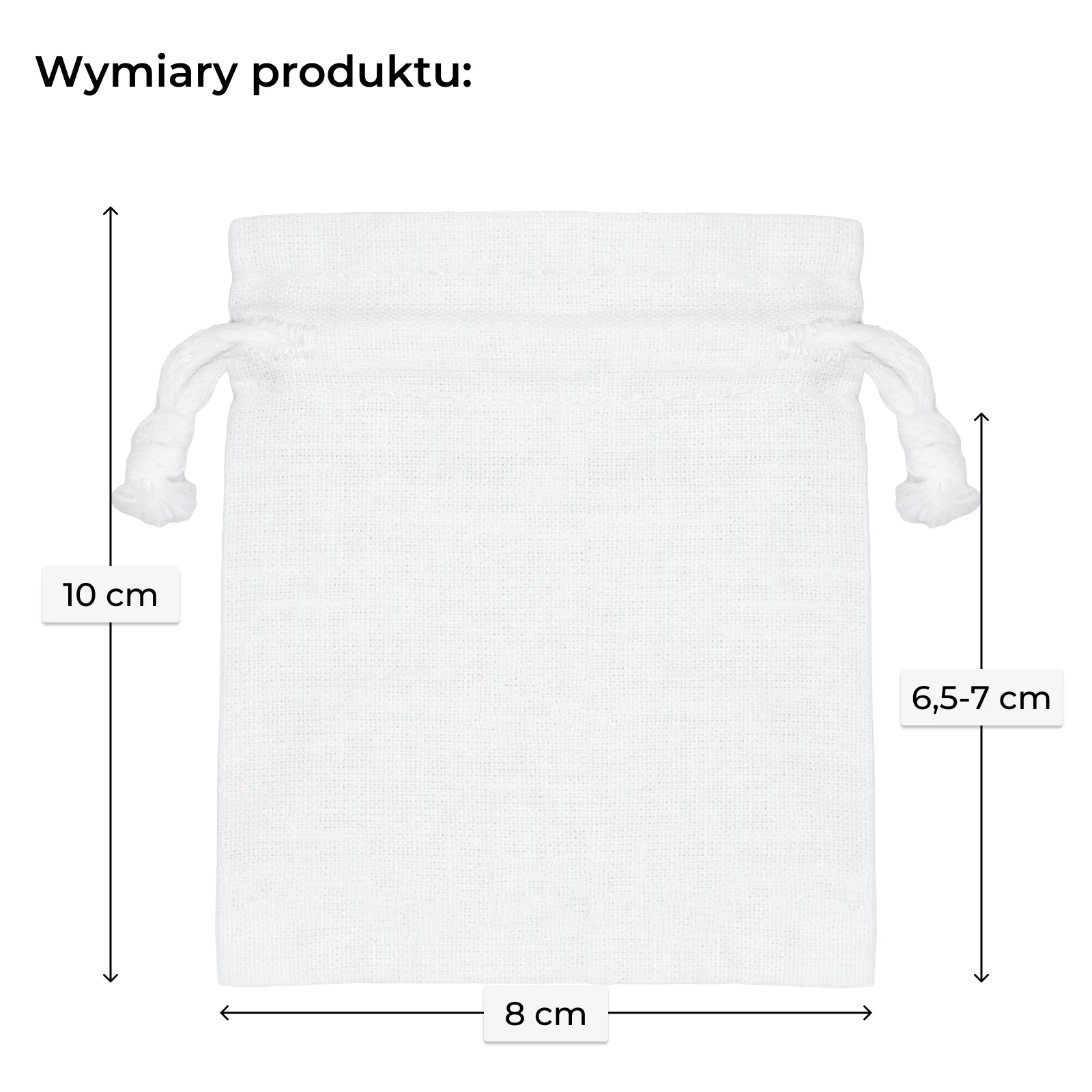 Niewielkie, uniwersalne woreczki z eleganckiej i trwałej bawełny w kolorze białym w rozmiarze 8 x 10 cm. Prezentowany przez nas pakiet składa się z 10 sztuk, dzięki czemu jednorazowy zakup wystarczy Ci na długo! Możesz wykorzystać je na wiele sposobów - na co dzień, w podróży czy podczas wyjątkowych sytuacji.