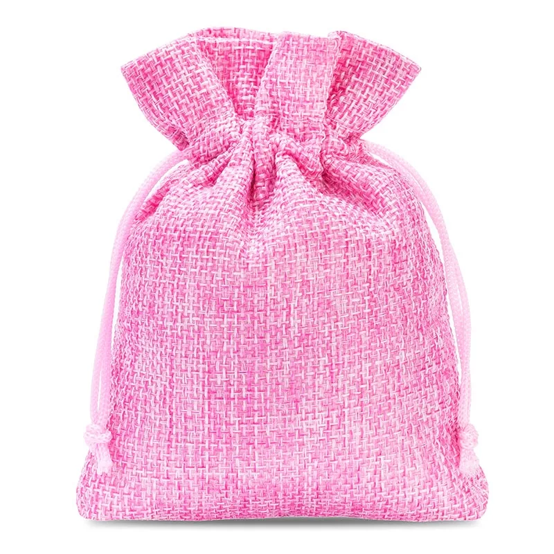 10 sztuk woreczków jutowych w kolorze różowym jasnym w rozmiarze 6 cm x 8 cm.