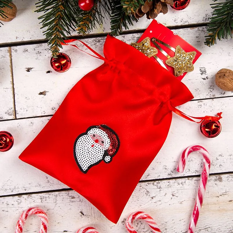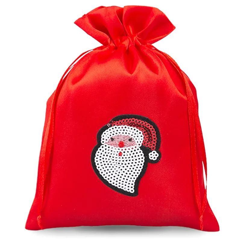Przedstawiamy idealne opakowania na prezenty na Boże Narodzenie i upominki na mikołajki (na prezenty od Św. Mikołaja)! Tu zamówisz urocze woreczki z czerwonej satyny o wymiarach 13 x 18 cm. W opakowaniu znajdziesz 10 sztuk sakiewek z podwójną czerwoną wstążką w ściągaczu. Te materiałowe woreczki zostały ozdobione błyszczącą aplikacją z cekinów przedstawiającą Świętego Mikołaja.