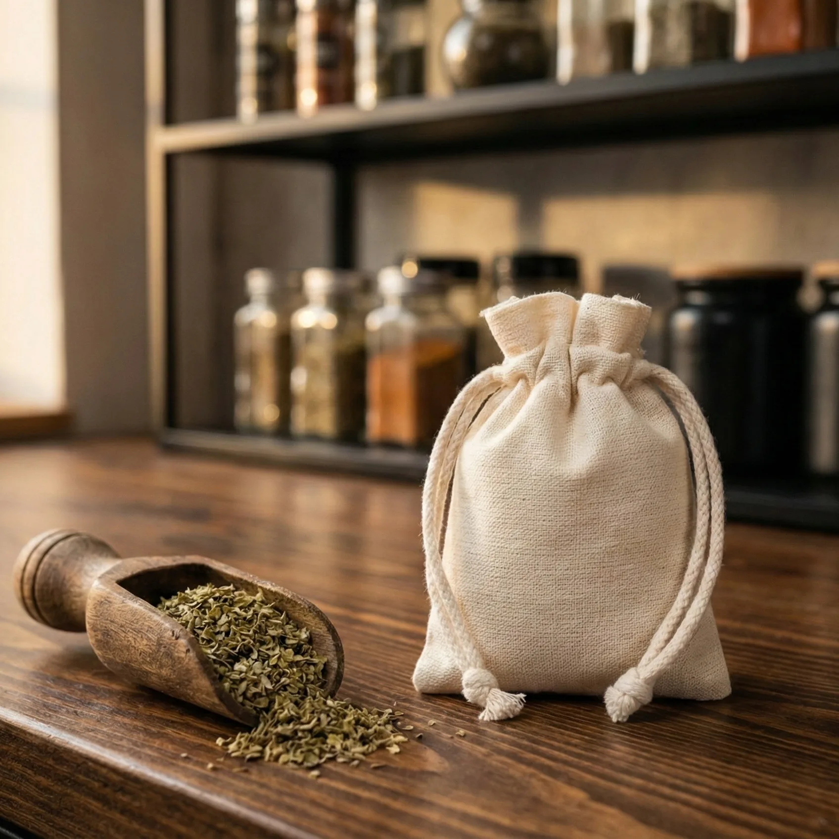 - Wygodne zamykanie: Woreczki zamykane są sznurkiem ze 100% bawełny, co jest praktyczne i estetyczne.