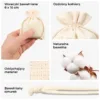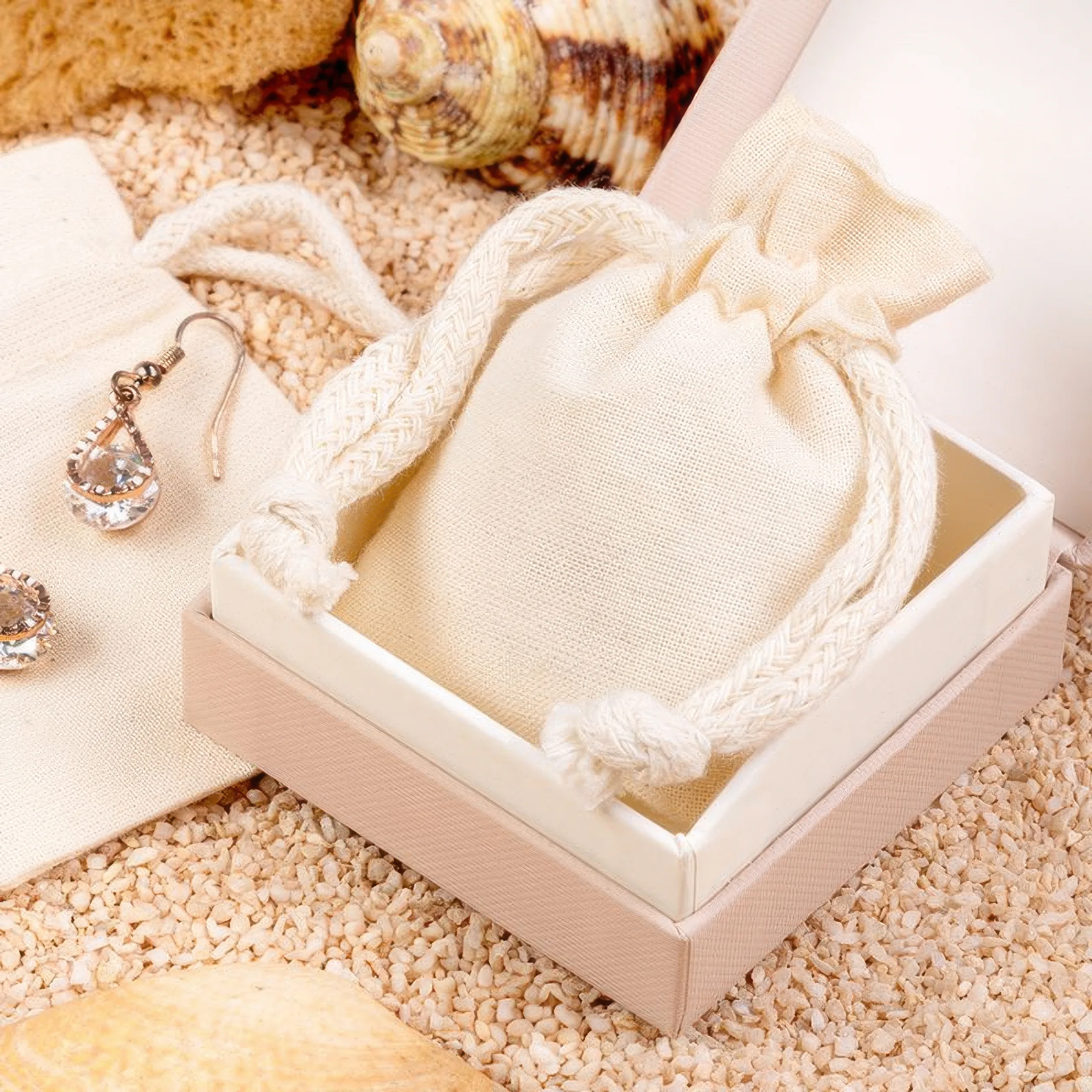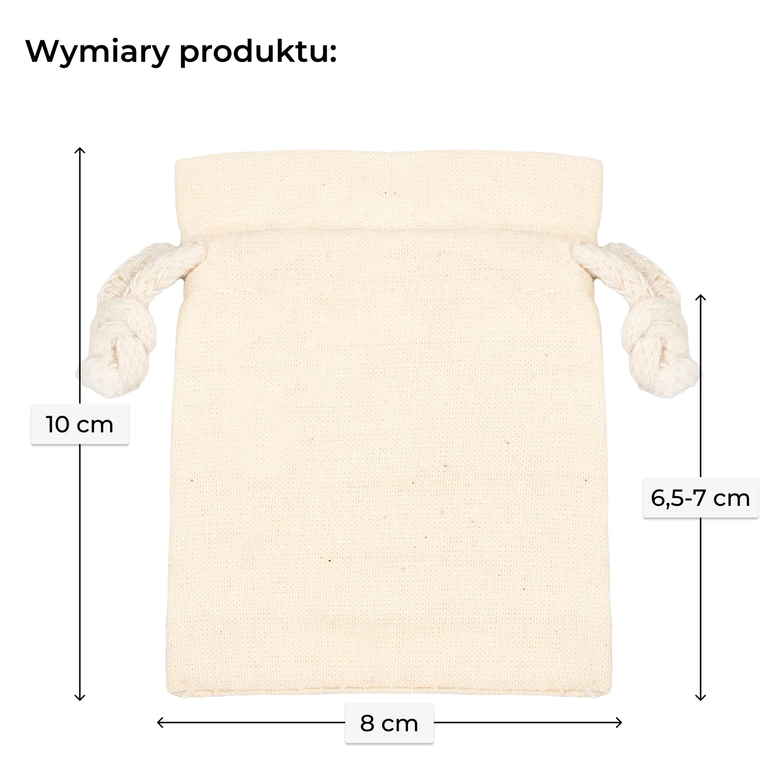 Woreczki powstały z wysokogatunkowej, naturalnej tkaniny bawełnianej, która cechuje się trwałością, przewiewnością i przyjemną w dotyku fakturą. Każdy woreczek został uszyty ręcznie z dbałością o szczegóły, co gwarantuje jego wytrzymałość i estetyczny wygląd. Jasny, naturalny odcień materiału sprawia, że doskonale komponuje się z każdym stylem - od rustykalnego po minimalistyczny.