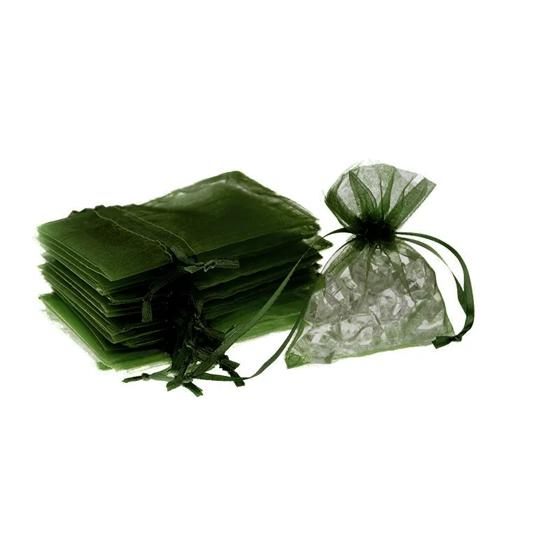 25 szt. Woreczki z organzy 11 x 14 cm - oliwkowe