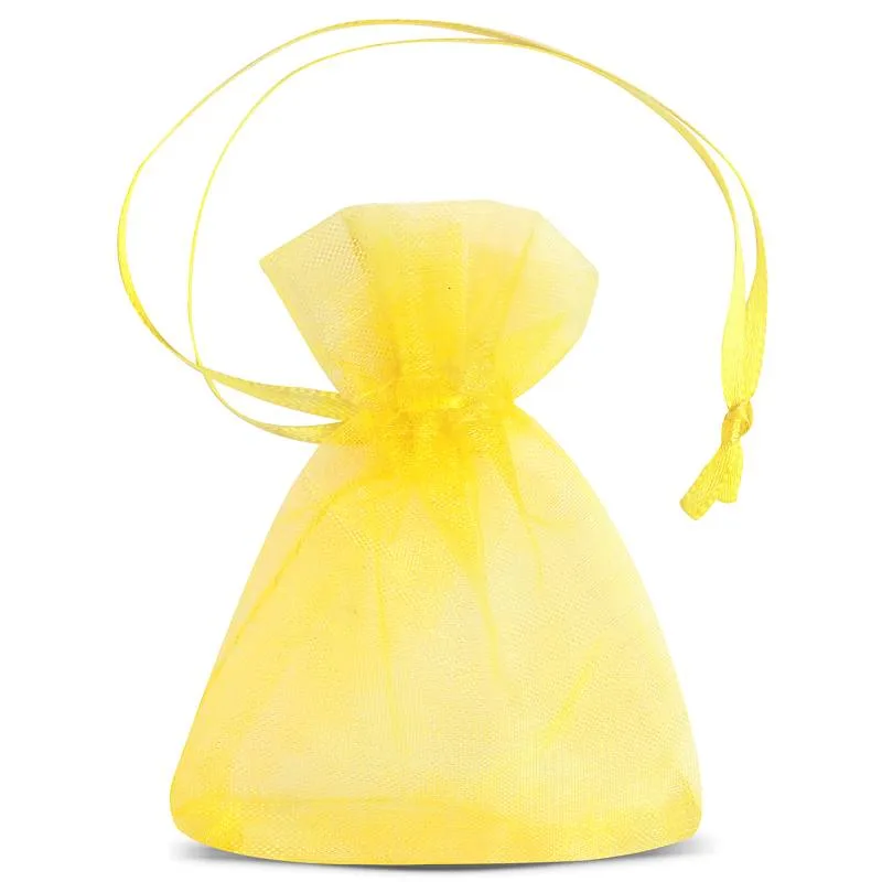 Żółte woreczki z organzy 7 x 9 cm - zaciągane na jedną stronę, 25 szt.