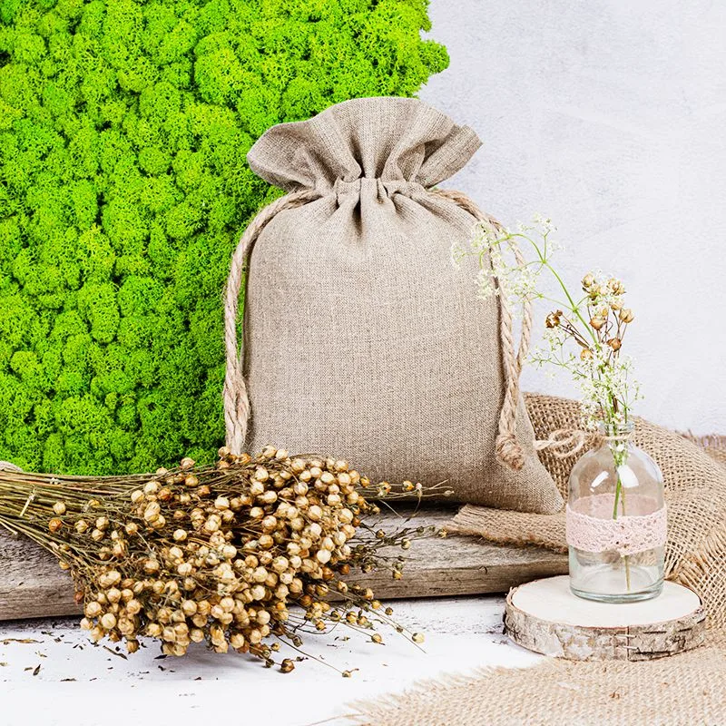 Woreczki lniane z nadrukiem to doskonałe opakowanie produktowe (korzystając z formularza personalizacji, możesz umieścić na nich dowolny nadruk, w tym logo swojej firmy).