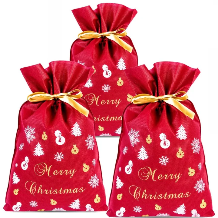 3 szt. czerwone worki świąteczne z fizeliny 20 x 30 cm - eko opakowanie prezentowe z nadrukiem Boże Narodzenie