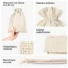 Worki à la lniane 22x30 cm łączą naturalny wygląd z funkcjonalnością i dużą pojemnością. Trwała tkanina dobrze trzyma formę, a podwójny sznurek z bawełny ułatwia codzienne użytkowanie. Jeden produkt możesz wykorzystać wiele razy - jako worek prezentowy, opakowanie produktowe, organizer do szafy czy praktyczny dodatek w podróży. Neutralny, lniany odcień podkreśla charakter prezentów, rękodzieła i zestawów firmowych, a jednocześnie nie konkuruje z grafiką, etykietą ani logo na produkcie.