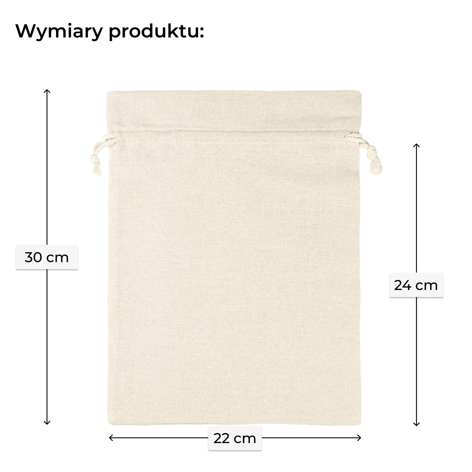 Worki à la lniane 22x30 cm łączą naturalny wygląd z funkcjonalnością i dużą pojemnością. Trwała tkanina dobrze trzyma formę, a podwójny sznurek z bawełny ułatwia codzienne użytkowanie. Jeden produkt możesz wykorzystać wiele razy - jako worek prezentowy, opakowanie produktowe, organizer do szafy czy praktyczny dodatek w podróży. Neutralny, lniany odcień podkreśla charakter prezentów, rękodzieła i zestawów firmowych, a jednocześnie nie konkuruje z grafiką, etykietą ani logo na produkcie.
