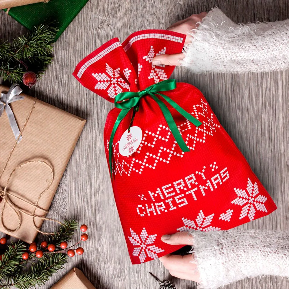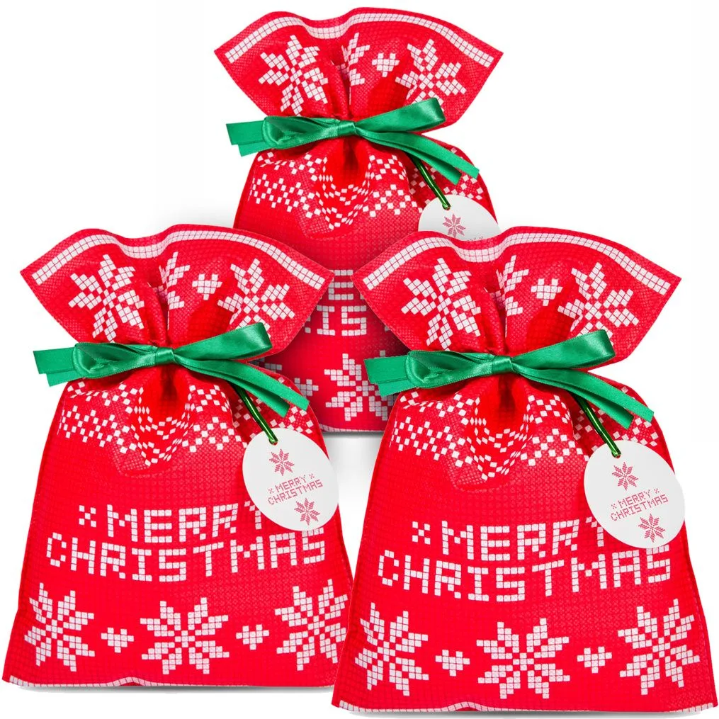 Odkryj wygodę i elegancję w jednym - czerwone worki na prezenty świąteczne 20 x 30 cm to idealne rozwiązanie do szybkiego i efektownego pakowania prezentów. Zestaw zawiera 3 worki z fizeliny (non-woven) z jednostronnym napisem "Merry Christmas". Każdy woreczek wyposażony jest w podwójny sznurek satynowy, który umożliwia łatwe i szybkie zamknięcie. To praktyczne opakowanie, które oszczędza Twój czas w gorącym okresie przedświątecznym.