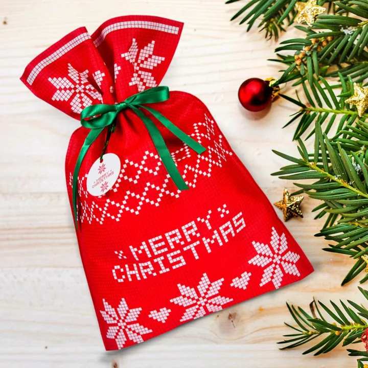 Czerwone świąteczne worki na prezenty "Merry Christmas"