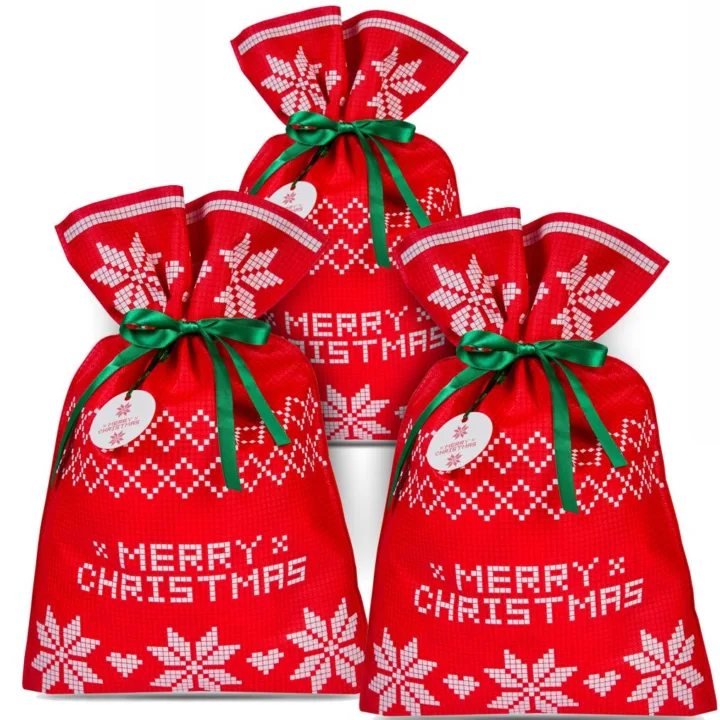 3 szt. worki z fizeliny 30 x 45 cm z nadrukiem świątecznym - eleganckie i ekologiczne opakowania prezentowe