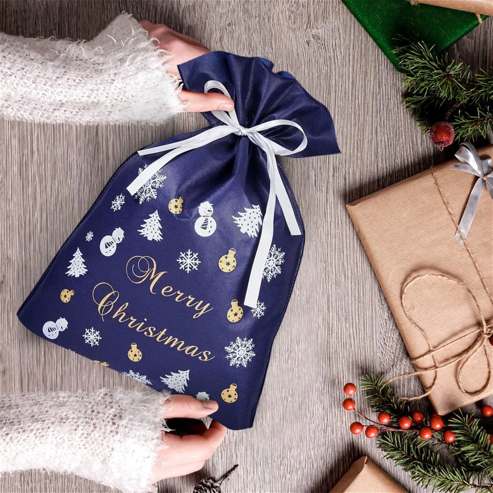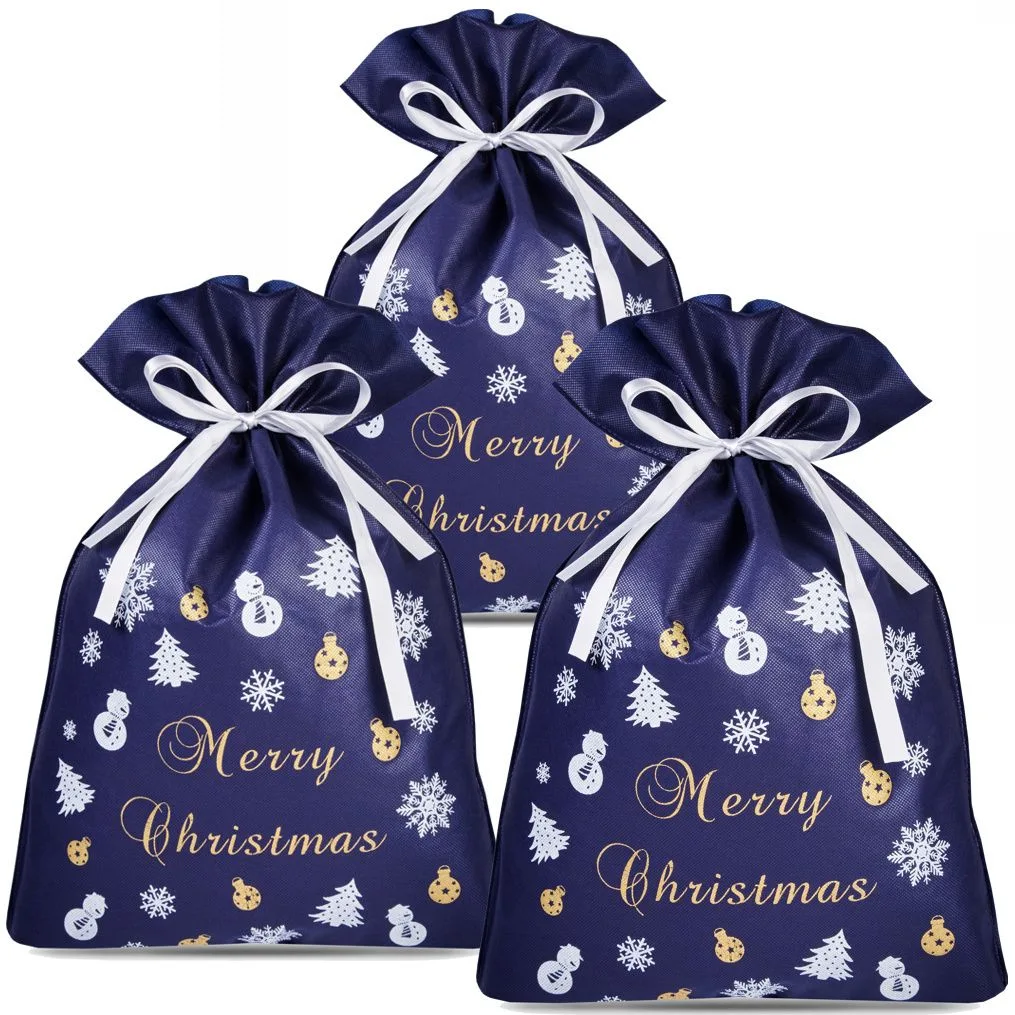 Duże worki z fizeliny 40 x 56 cm z nadrukiem świątecznym - zestaw 3 szt. na prezenty firmowe