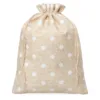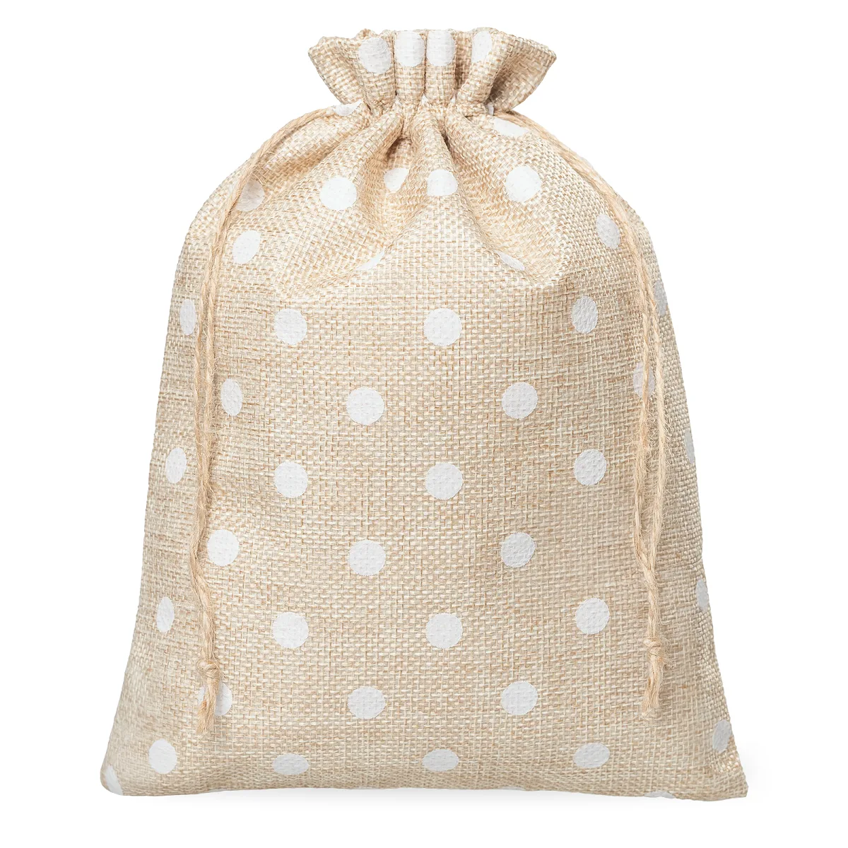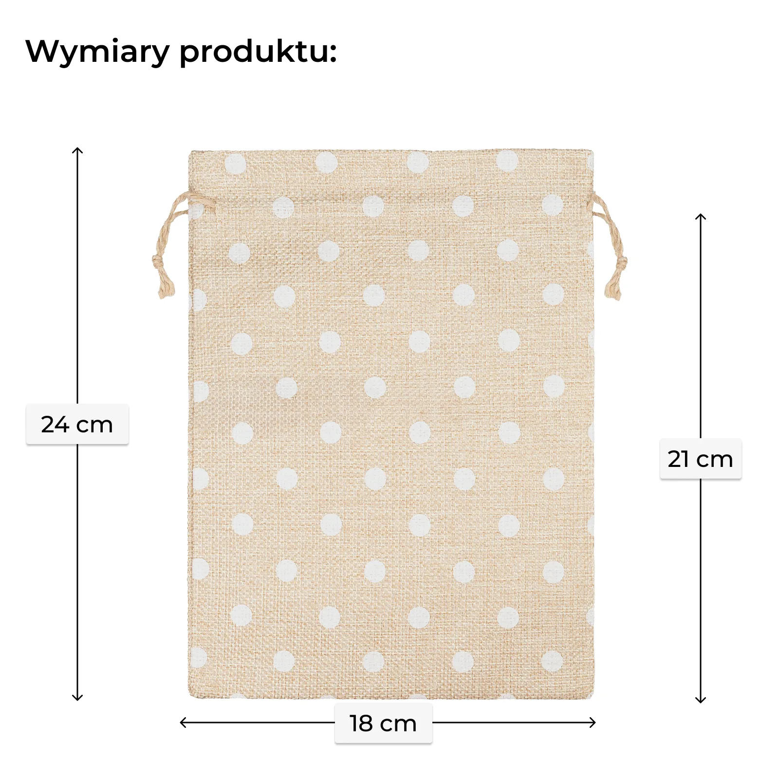 Woreczki jutowe 18 x 24 cm z białymi kropkami - zestaw 5 sztuk