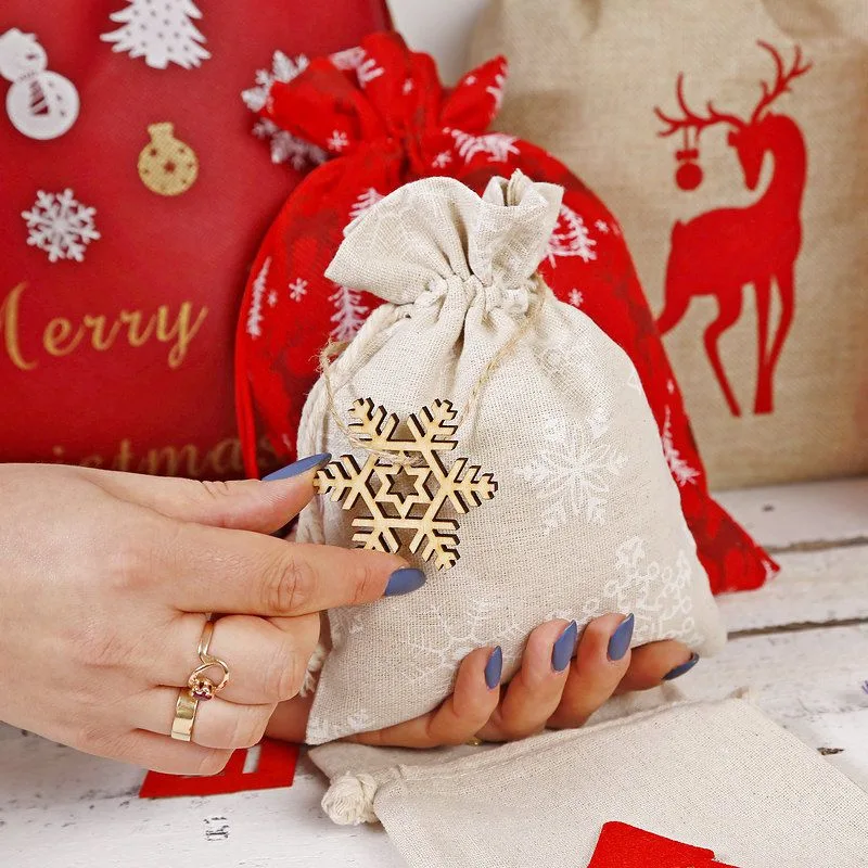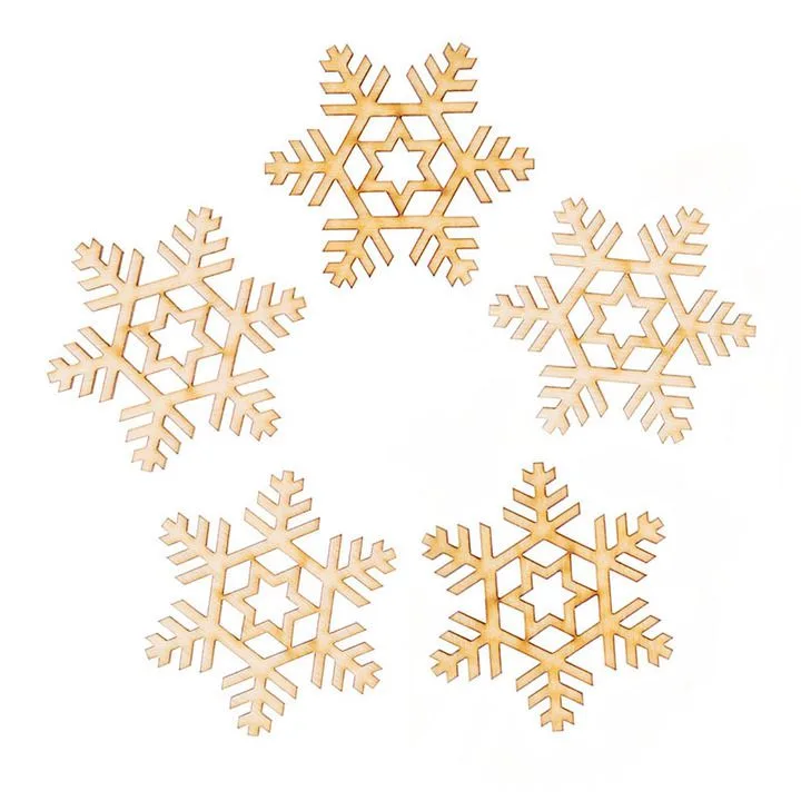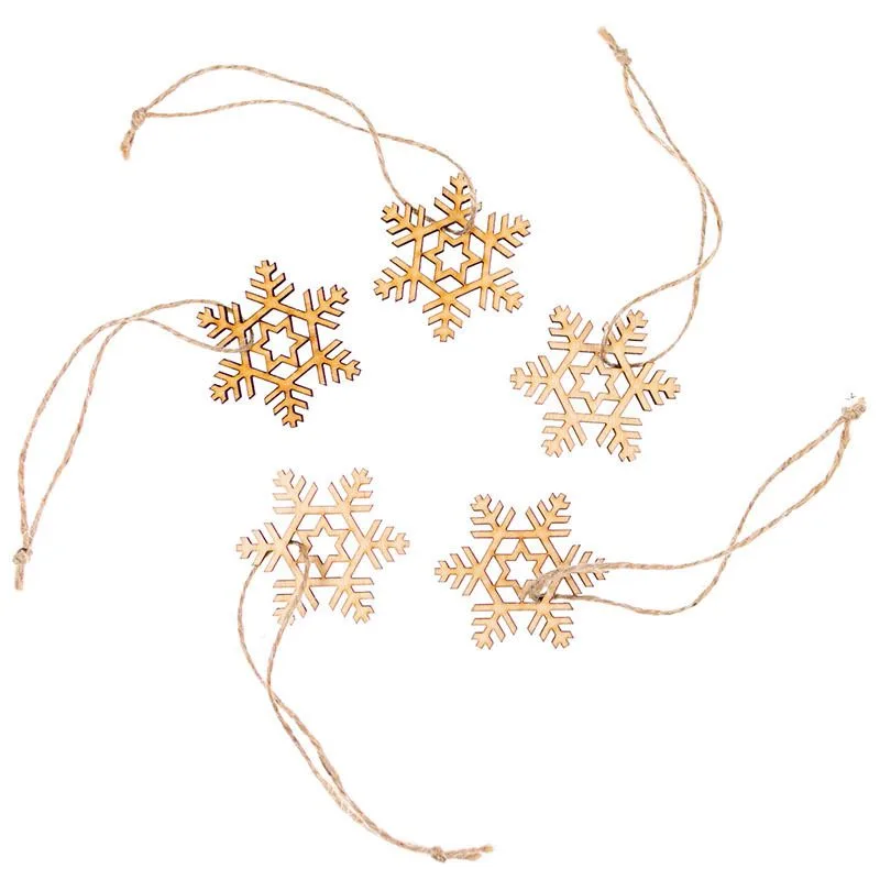 Tu zamówisz urocze zawieszki świąteczne przedstawiające drewniane gwiazdki / śnieżynki. W opakowaniu znajduje się 5 sztuk bożonarodzeniowych zawieszek ażurowych z drewnianej sklejki (naturalne, kolor drewna).