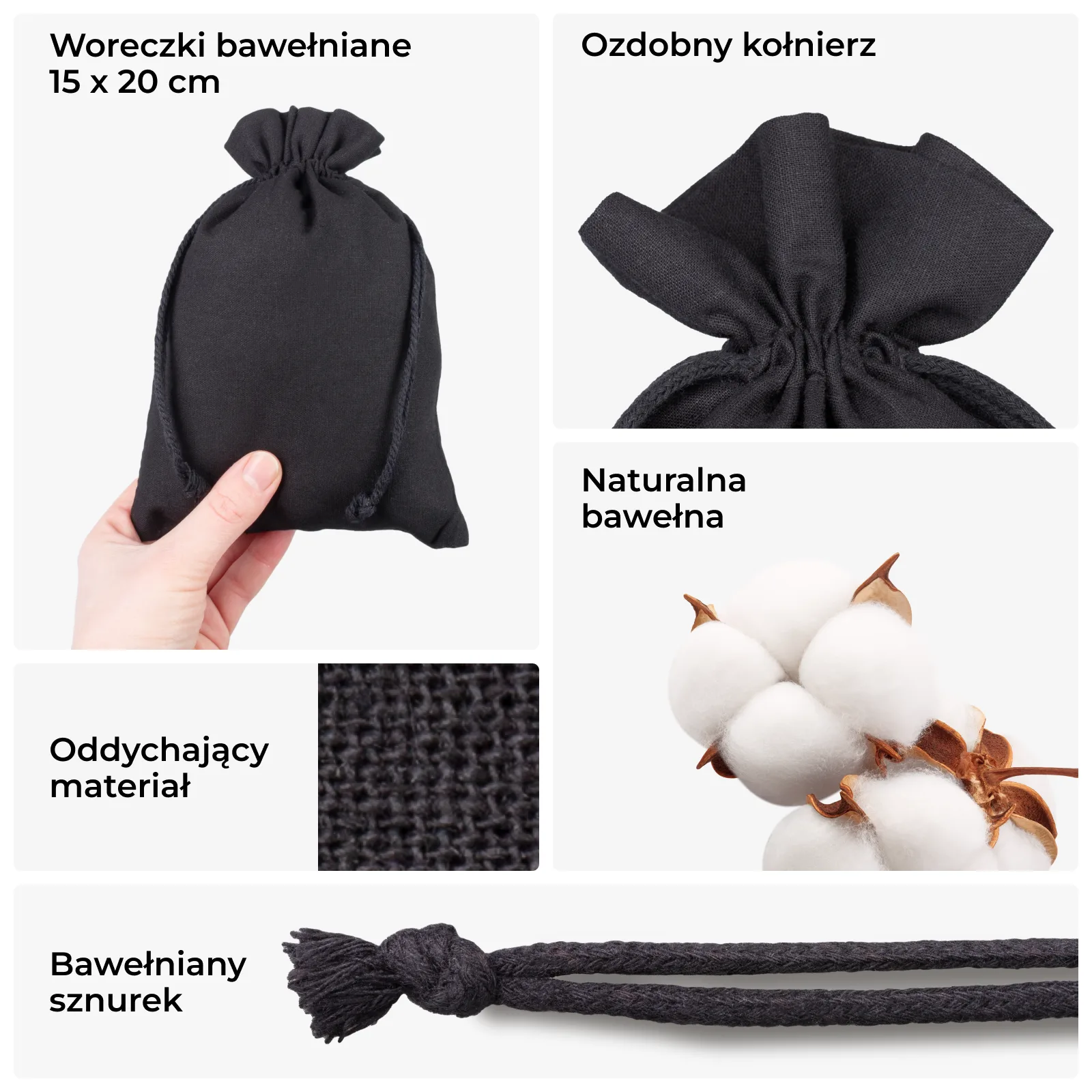 Czarne woreczki bawełniane 15 x 20 cm 5 szt. - eleganckie opakowania premium