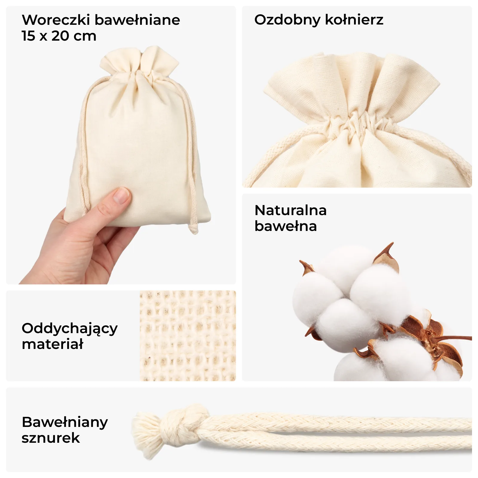 Woreczki bawełniane 15 x 20 cm, 5 szt. - naturalne opakowania