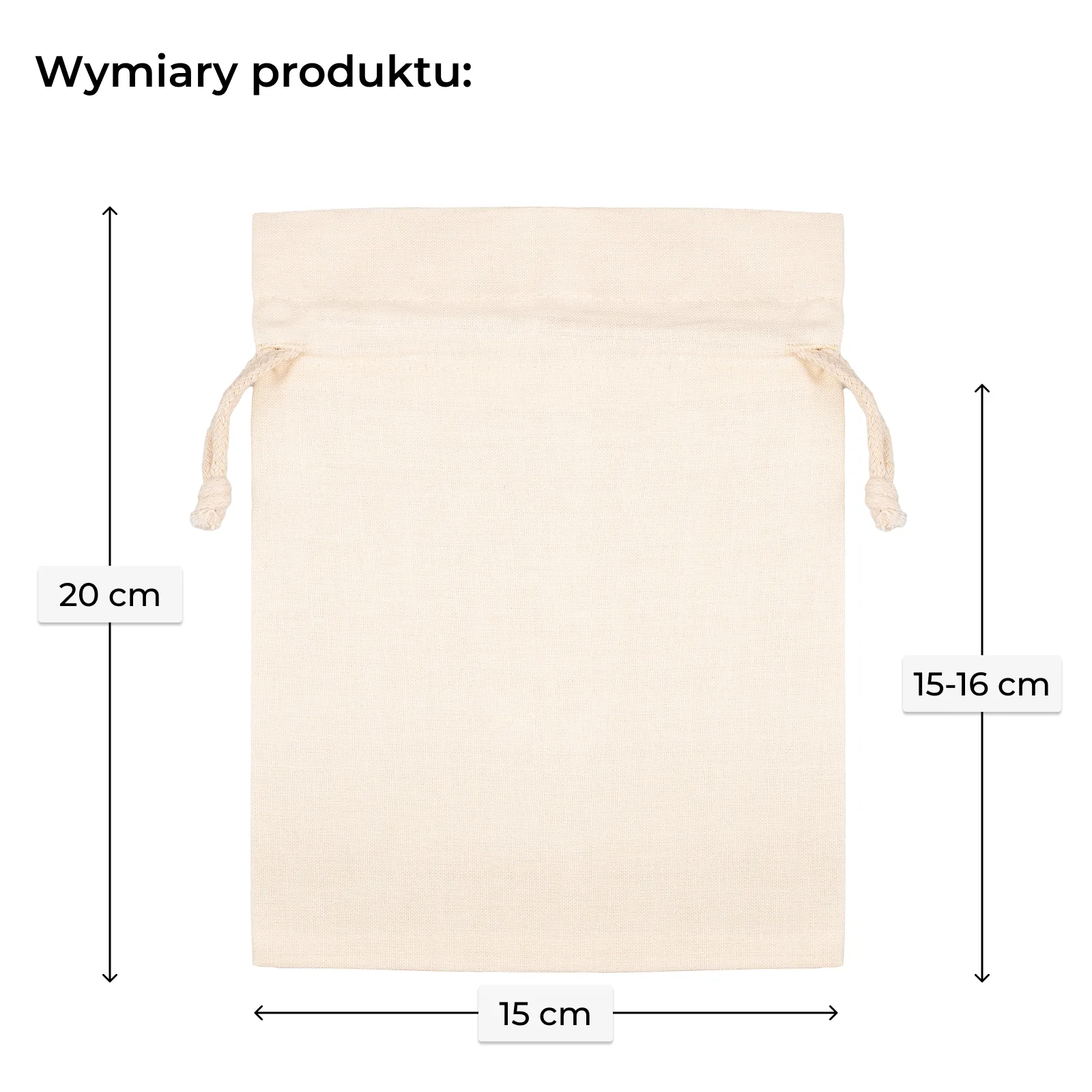 Woreczki wykonane są z niebielonej bawełny o gramaturze 140 g/m², co zapewnia im trwałość i odporność na przetarcia. Mocny, sznurek ze 100% bawełny gwarantuje, że nawet cięższe zestawy będą bezpieczne. To opakowanie, które posłuży Twoim klientom długo po rozpakowaniu prezentu.