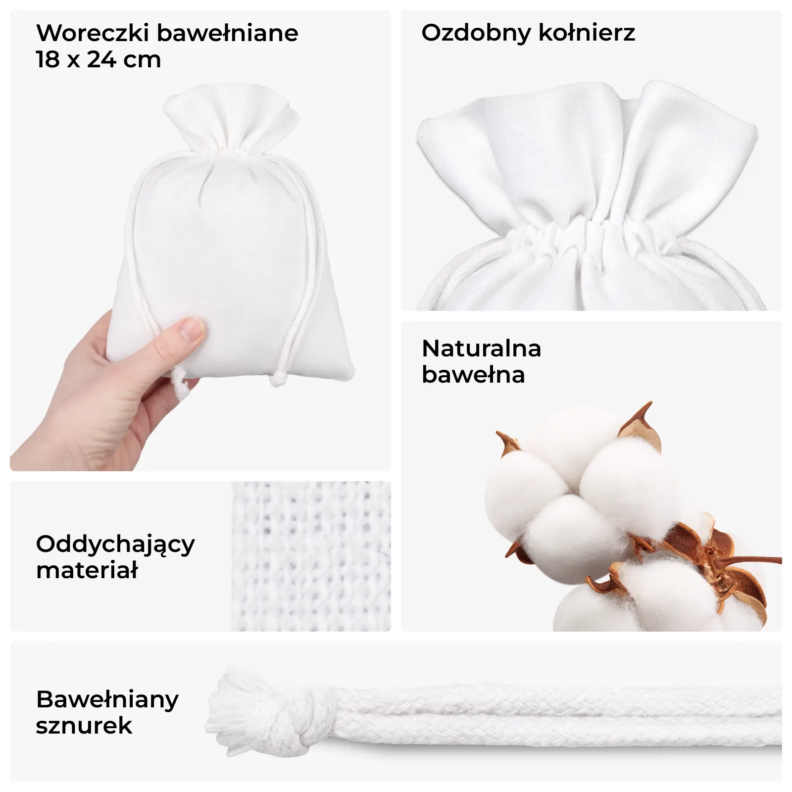 Białe woreczki bawełniane 18 x 24 cm - 5 szt, uniwersalne opakowanie