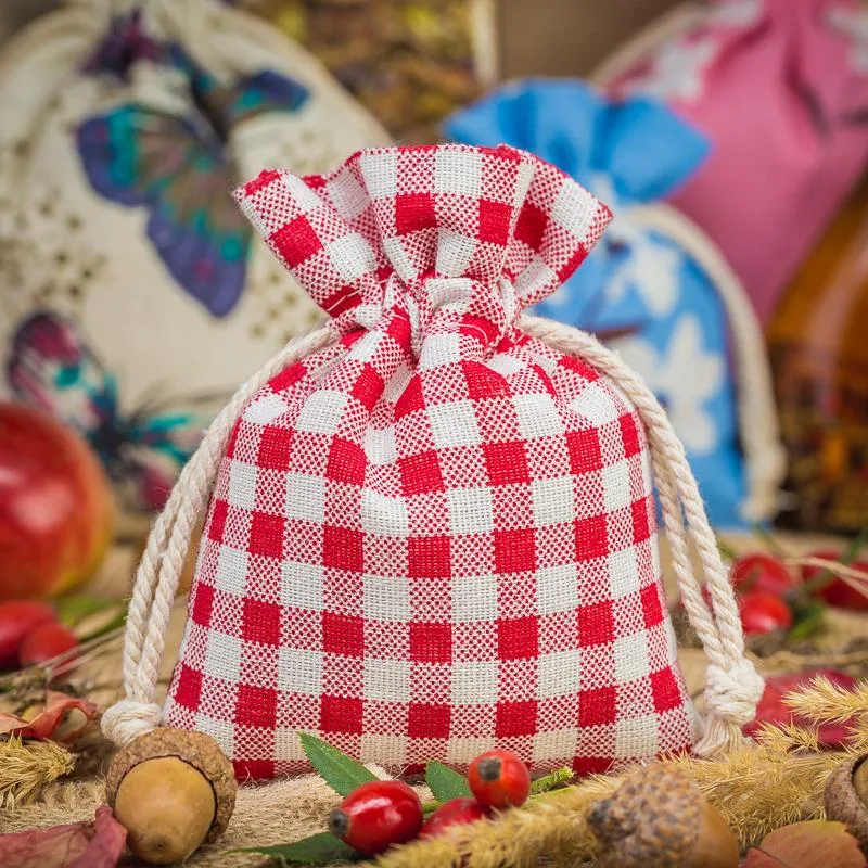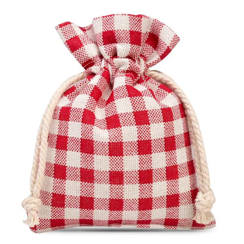 5 x Woreczki à la lniane 10 x 13 cm w czerwono-białą kratę - dekoracyjne i praktyczne rozwiązanie