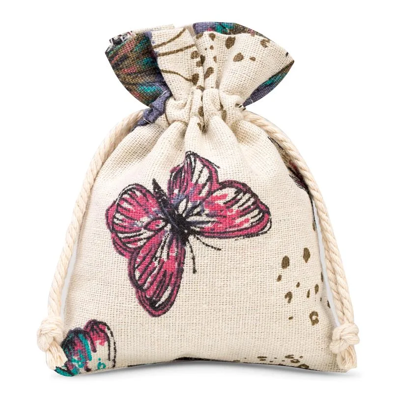 5 Woreczków à la lnianych z nadrukiem motyla 10 x 13 cm, kolor naturalny