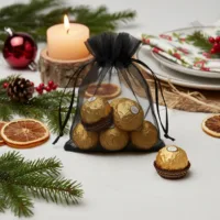Czarne worki z organzy 30 x 40 cm - 5 sztuk - opakowanie premium na prezenty
