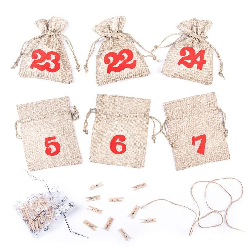 1 szt. Kalendarz adwentowy woreczki jutowe 11 x 14 cm - naturalne + czerwone numery