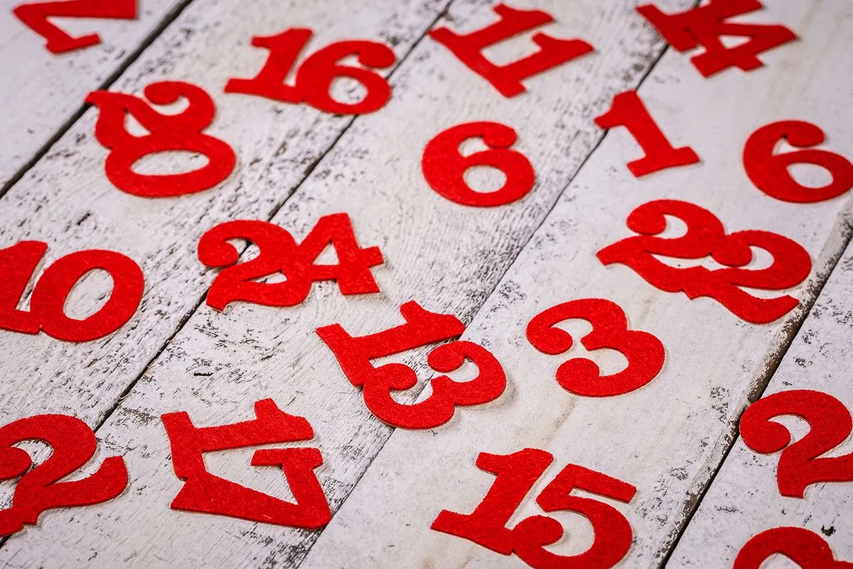 - Filcowe naklejki w kolorze czerwonym z numerami na każdy dzień adwentu (od 1 do 24)