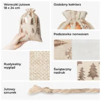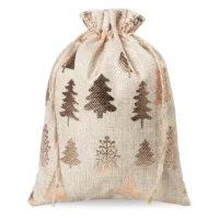 Woreczki jutowe 18x24 cm z choinkami - zestaw 5 szt. na święta