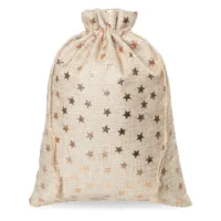 5 ozdobnych woreczków z juty 18x24 cm - złote gwiazdki i rustykalny styl