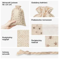 - Na Boże Narodzenie: Ręcznie robione pierniczki, aromatyczna świeca, ciepłe skarpety czy zestaw herbat zimowych – wszystko to idealnie zmieści się w naszych świątecznych woreczkach.