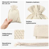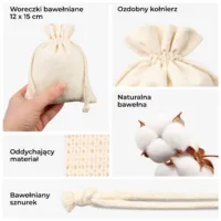 Woreczki bawełniane 12 x 15 cm - naturalne opakowania, zestaw 10 szt.