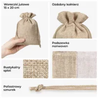 Woreczki jutowe 15 x 20 cm w kolorze naturalnym (5 szt.)