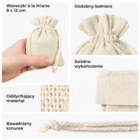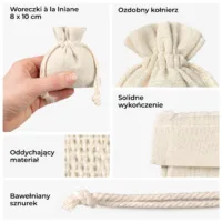 - Podziękowania dla gości: Eleganckie woreczki to najlepszy sposób na zapakowanie drobnych upominków, takich jak migdały, czekoladki, magnesy czy małe słoiczki z miodem.