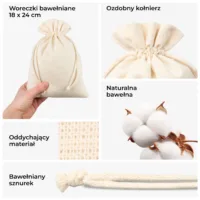 Woreczki bawełniane 15 x 20 cm, 5 szt. - naturalne opakowania