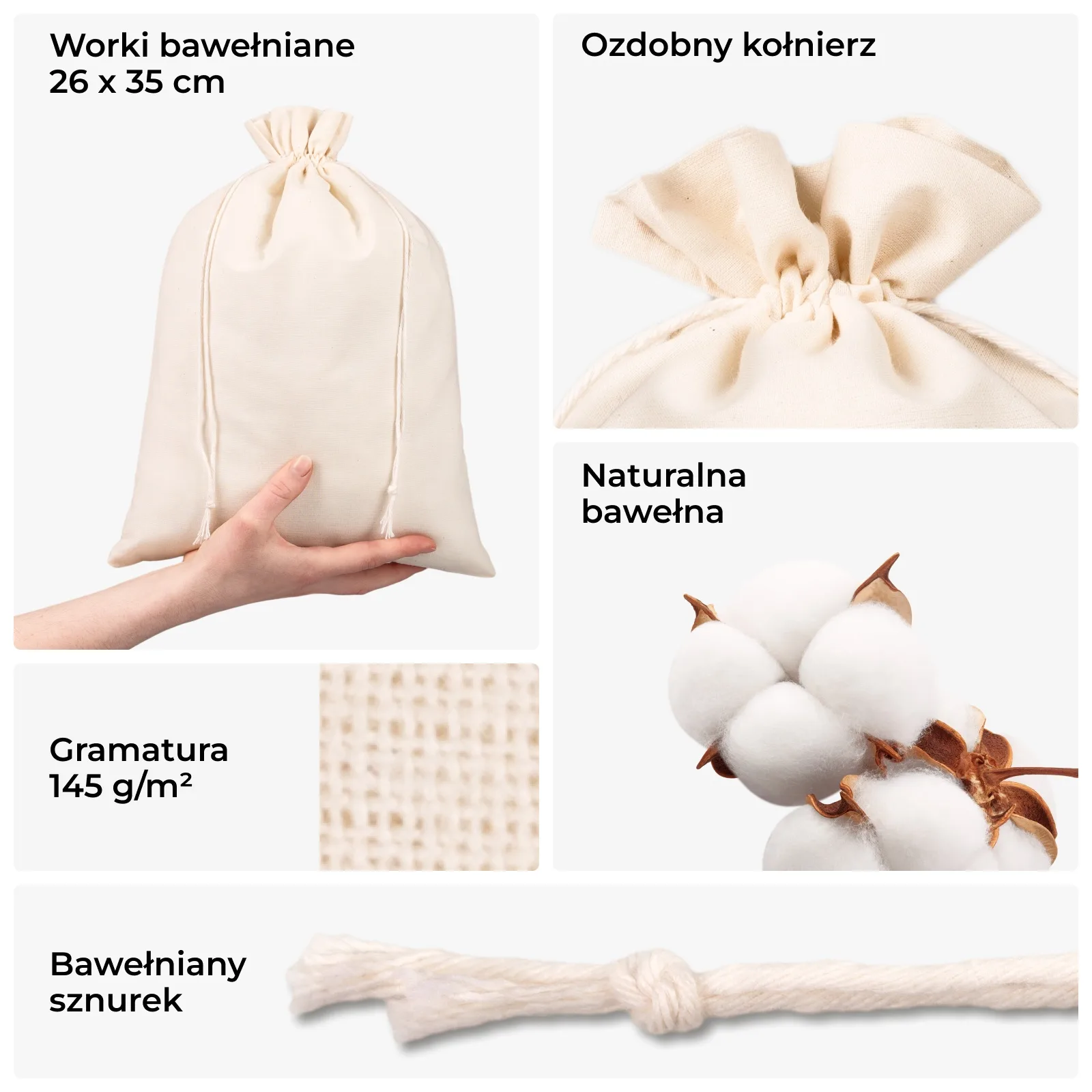 - Zamknięcie: bawełniany sznurek - łatwe użytkowanie