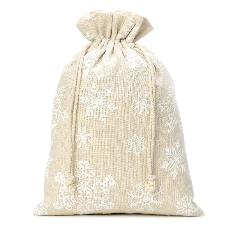 10 szt. Woreczki à la lniane z nadrukiem 13 x 18 cm - naturalne / śnieg