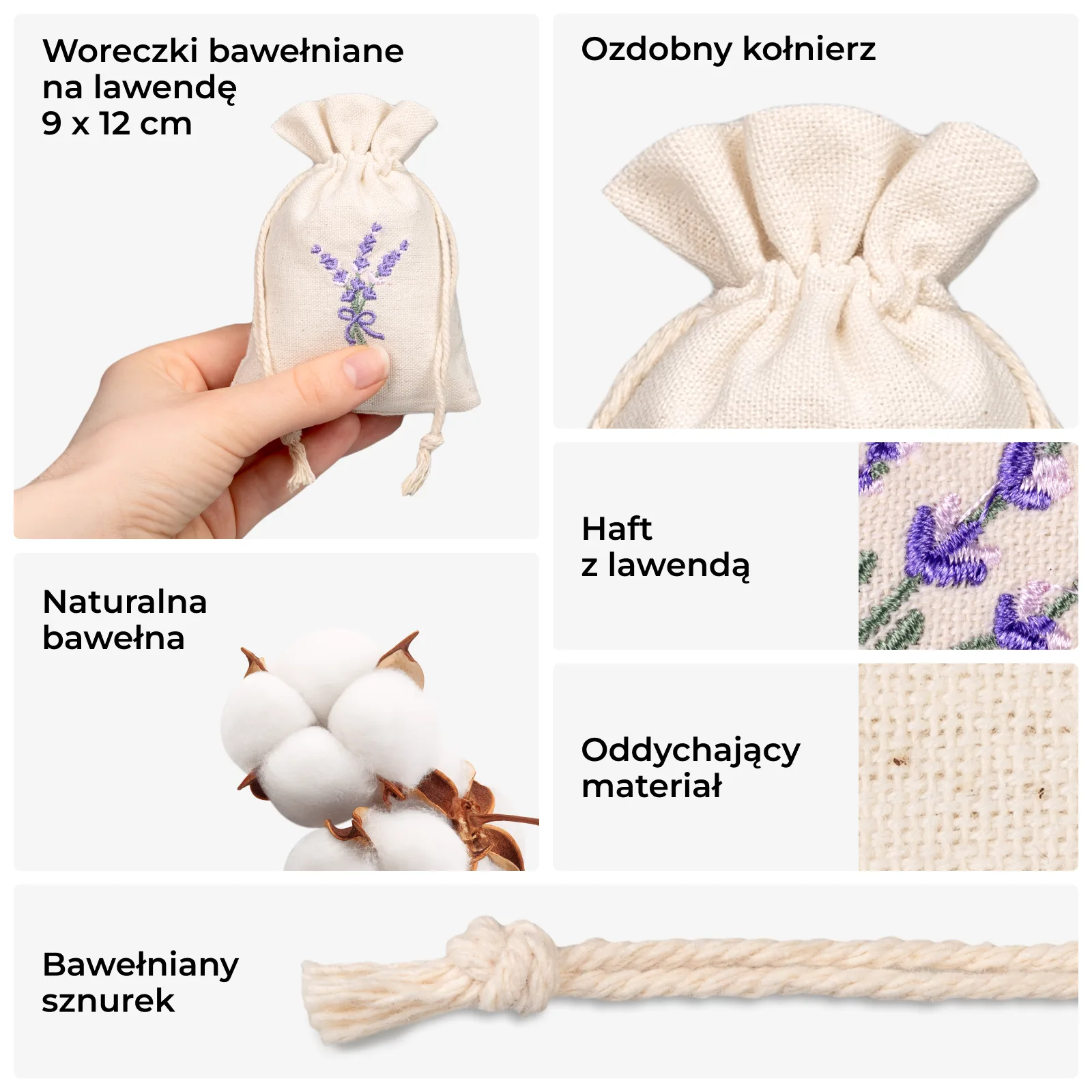 Woreczki bawełniane z haftowaną lawendą 9x12 cm - 10 szt - zapach, który widać