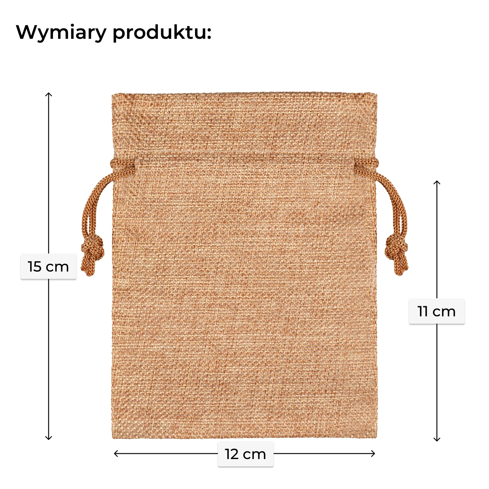 Woreczki wykonano z tkaniny, która łączy rustykalny wygląd juty z zaletami nowoczesnego materiału. Ciepły, jasnobrązowy kolor jest trwały, a sama tkanina jest odporna na przetarcia i nie pyli. Woreczki zamykane są sznurkiem, co jest praktyczne i estetyczne. To gwarantuje czystość i bezpieczeństwo zapakowanych przedmiotów. Jest to niezawodne i estetyczne rozwiązanie dla Twojej firmy.