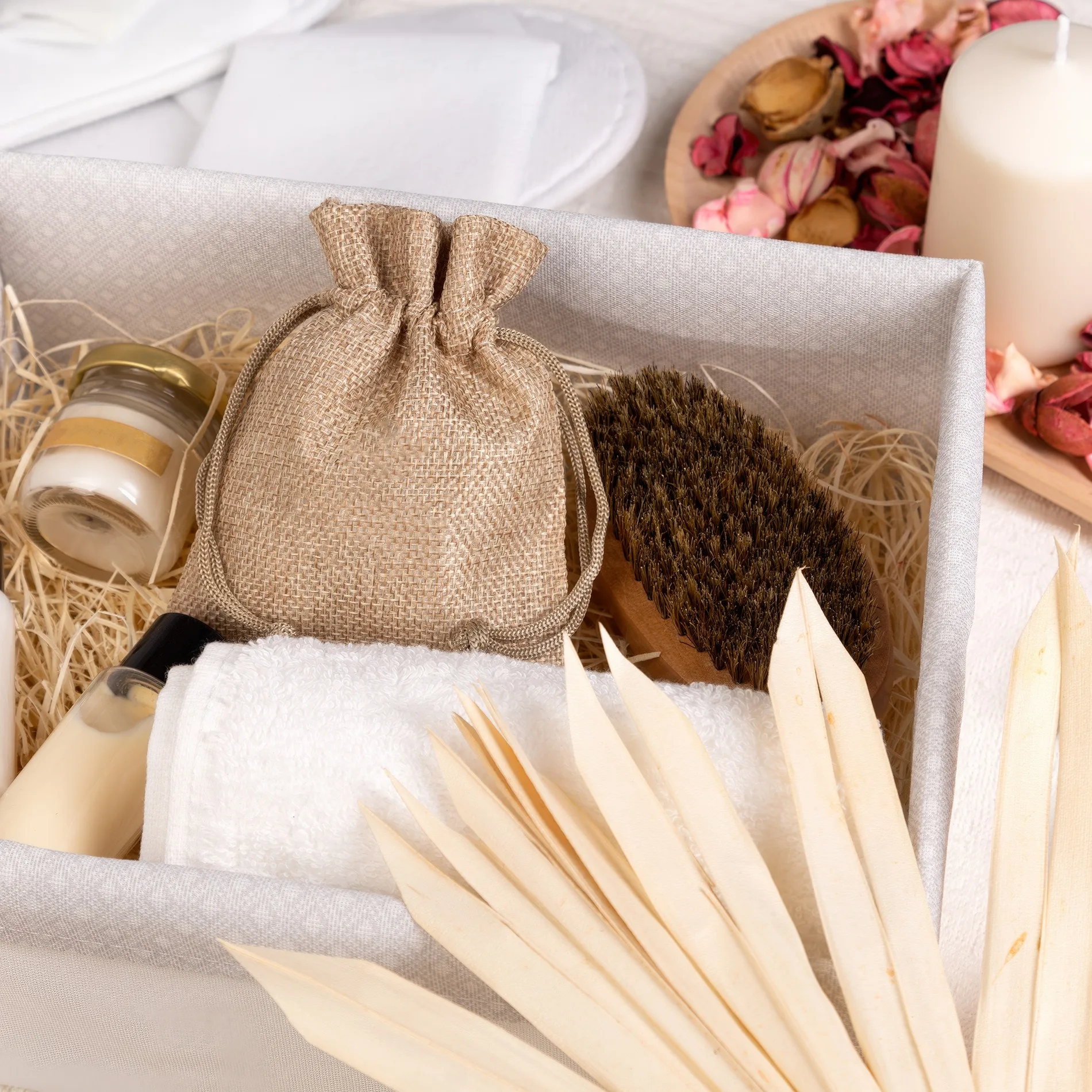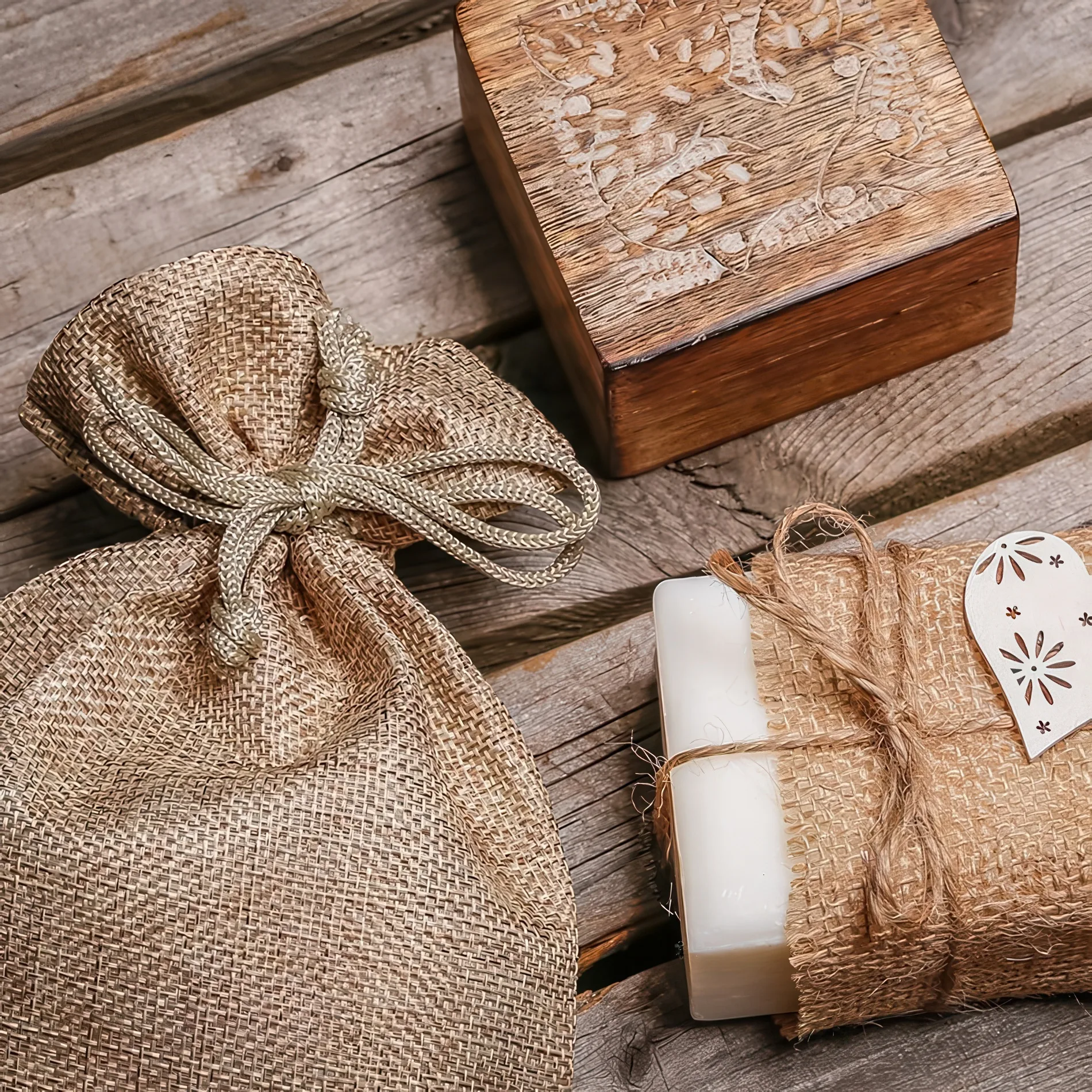 Woreczki jutowe o wymiarach 12 x 15 cm to praktyczne i uniwersalne rozwiązanie do pakowania małych i średnich przedmiotów. Dzięki kompaktowym wymiarom są wygodne w użyciu, łatwe do przechowywania i wielokrotnego zastosowania. Sprawdzają się w różnych sytuacjach - od eleganckiego pakowania drobnych upominków po praktyczne organizery w stylu wellness.