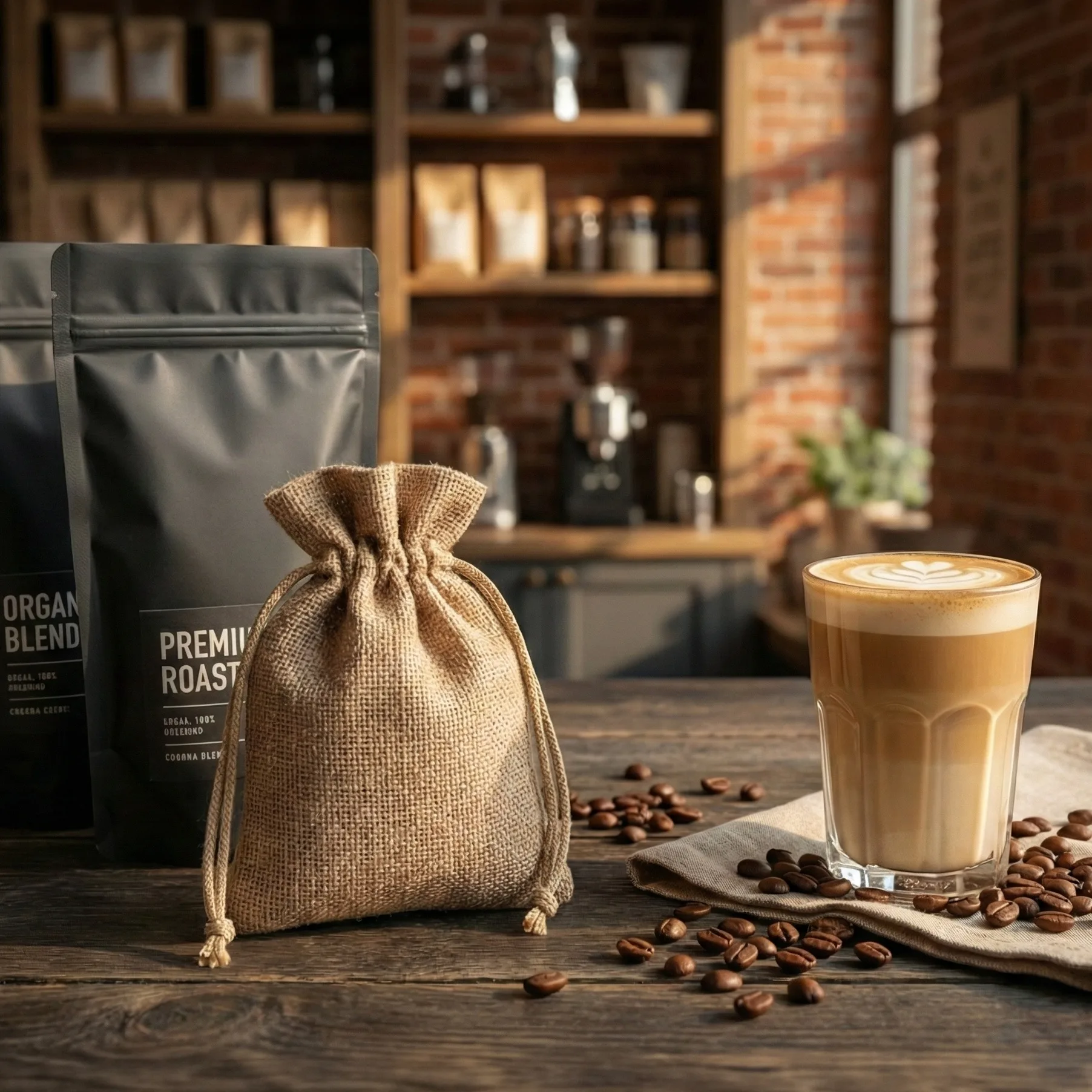 Nasze woreczki powstały z tkaniny, która wizualnie naśladuje jutę, ale jest od niej znacznie bardziej wytrzymała. Gęsty splot materiału o wyglądzie juty chroni zawartość, a jego struktura jest gładka i nie pozostawia włókien na produktach. Woreczki zamykane są sznurkiem, co jest praktyczne i estetyczne. To gwarancja, że opakowanie zachowa estetyczny wygląd na długo.